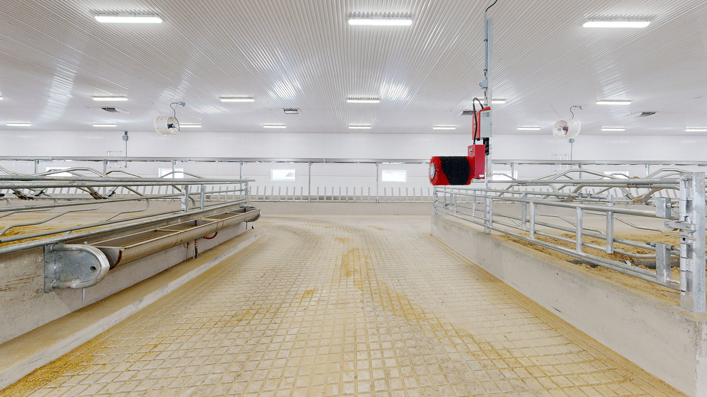 Barn cleanliness is maintained with two robotic manure collectors, helping create a healthier environment for livestock while reducing labor requirements.